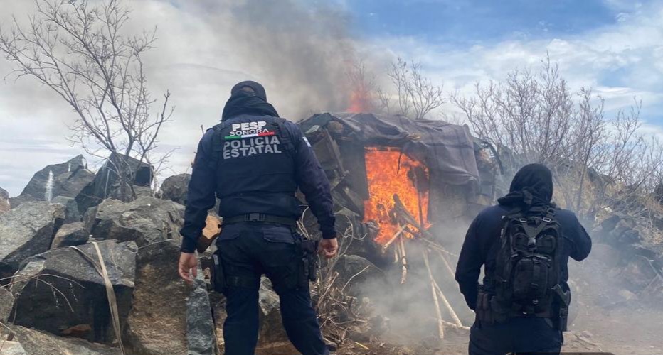 Hermosillo, Sonora; 25 de julio de 2025.- Como parte de las acciones para fortalecer la seguridad en el norte del estado, el Gobierno de Sonora, a través de la Secretaría de Seguridad Pública (SSP), realizó el hallazgo y destrucción de puntos de vigilancia clandestinos localizados en la zona fronteriza.