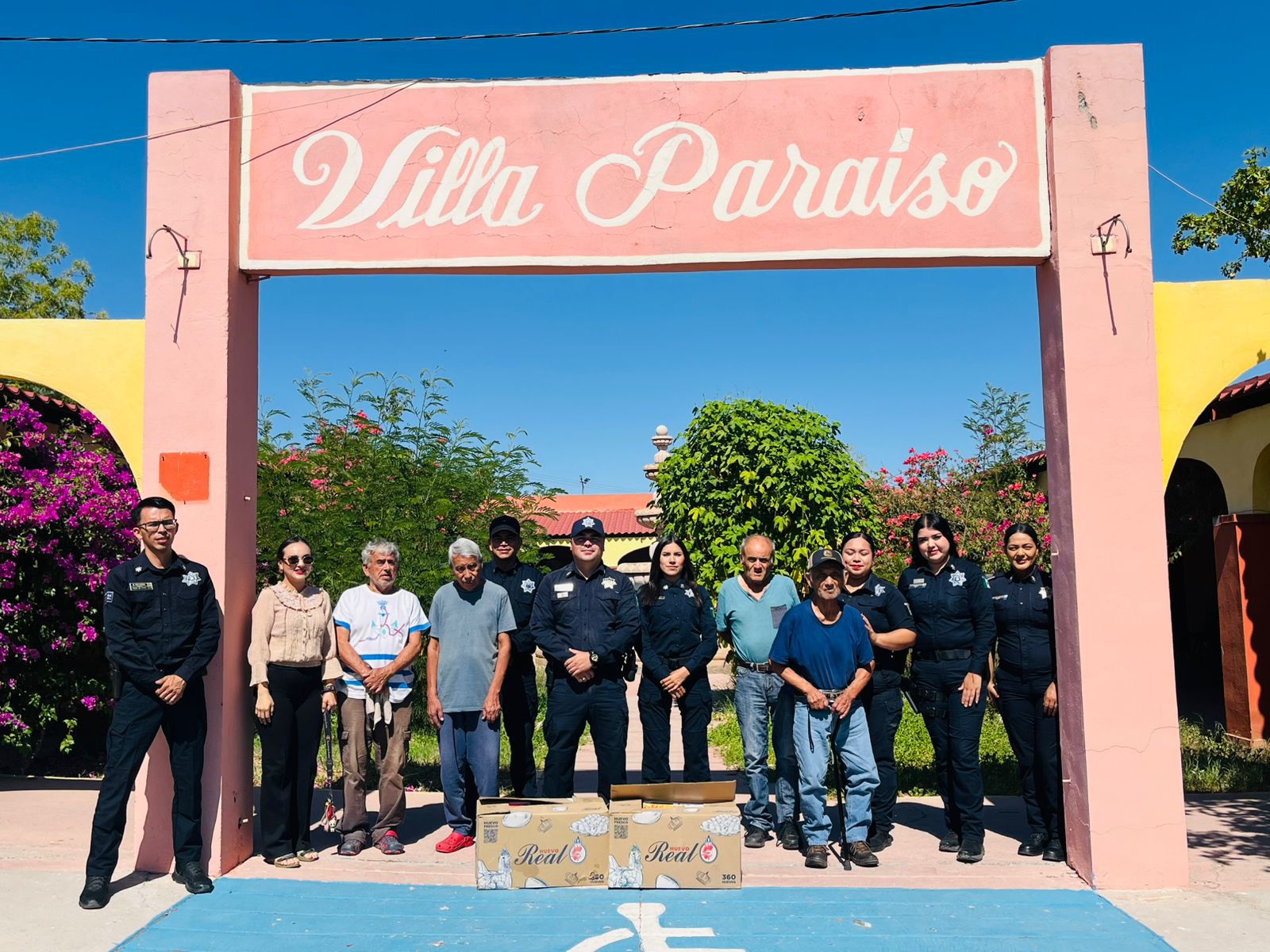 Durante patrullajes en la colonia Nuevo Hermosillo conocieron Villa Paraíso y tocaron la puerta del lugar para compartir alegría, platicar con habitantes y compartir la mesa, impulsandolos a salir de su rutina y promover cercanía para estrechar lazos de proximidad.