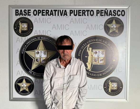 Puerto Peñasco, Sonora, 4 de agosto de 2025.- La Fiscalía General de Justicia del Estado de Sonora (FGJES), a través de la Agencia Ministerial de Investigación Criminal (AMIC), logró la captura de David “N”, de 72 años, originario de Phoenix, Arizona, señalado como probable responsable de los delitos de pornografía infantil, posesión de material pornográfico y violación de libertad condicional, según una orden de arresto federal emitida en octubre de 2024 por la Corte del Distrito de Arizona, Estados Unidos de América.