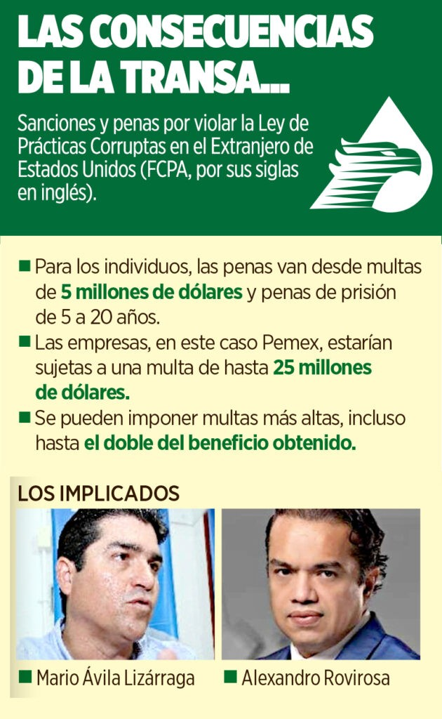 La acusación se realiza bajo la Ley de Prácticas Corruptas en el Extranjero de EU (FCPA, por su siglas en inglés), que implicaría sanciones a Pemex con multas hasta por 25 millones de dólares.