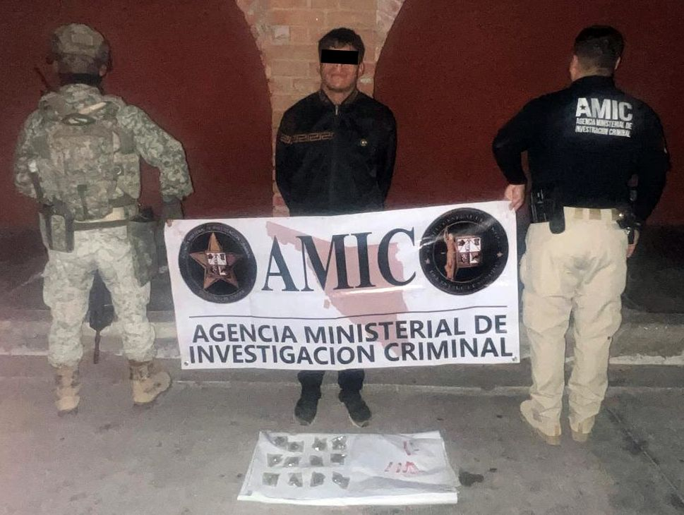 En otra acción, desarrollada en la colonia Centro, en Sonoyta, municipio de General Plutarco Elías Calles, fue detenido José Ángel “N”, de 21 años, originario de Ecatepec, Estado de México, a quien se le aseguraron doce envoltorios con marihuana y siete con “cristal” al momento de su inspección.