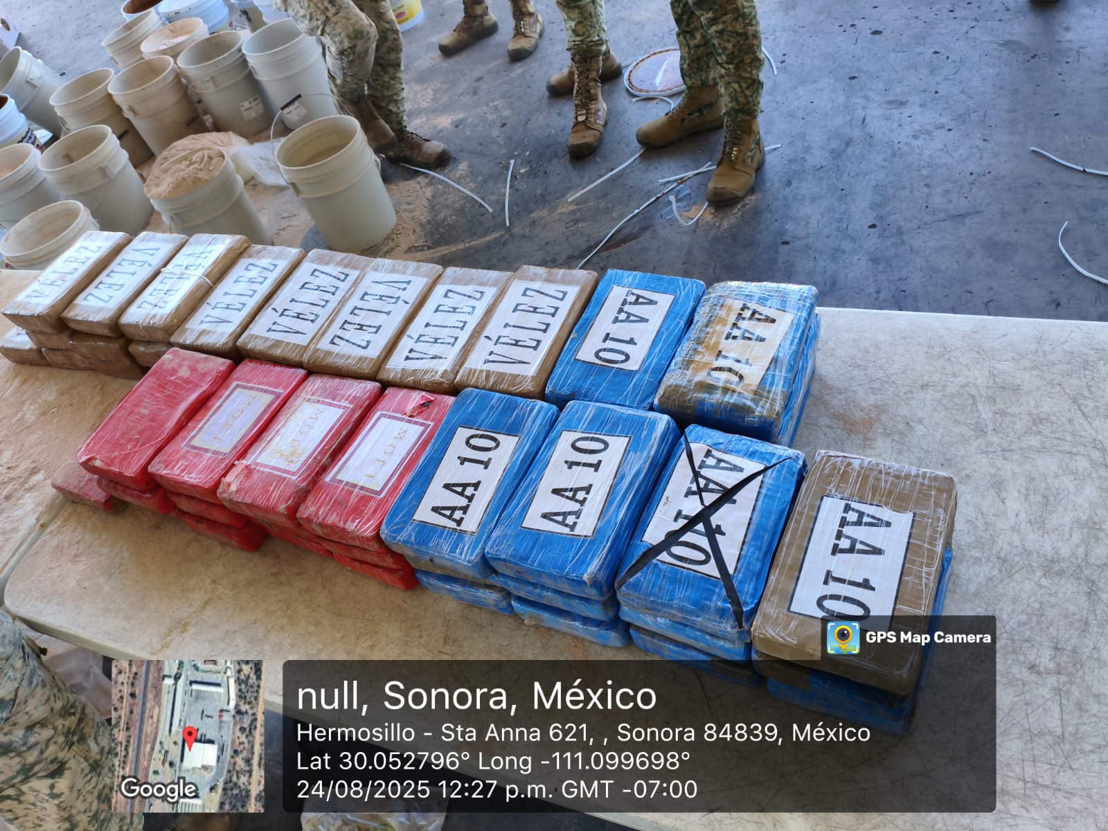 Querobabi, Son., a 24 de agosto de 2025.- Elementos del Ejército Mexicano, en estrecha coordinación con personal de la Guardia Nacional, al realizar una inspección a un tractocamión mediante el equipo de Rayos X en el Puesto Militar de Seguridad Estratégico “Querobabi” lograron asegurar lo siguiente: