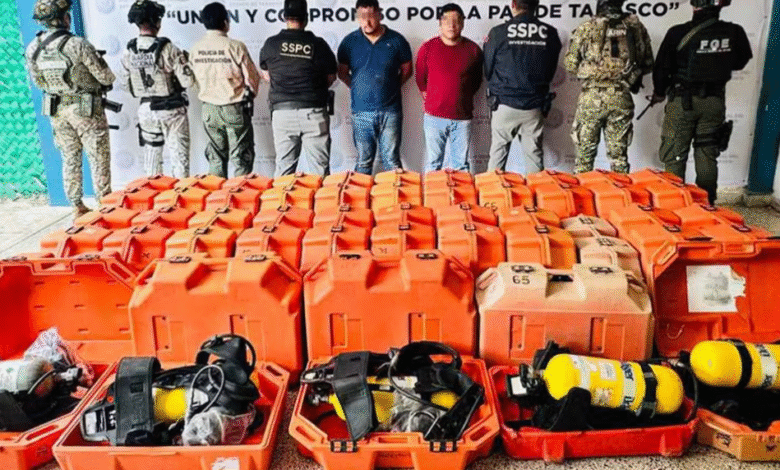 Al momento de su detención les fueron asegurados 30 equipos de respiración autónoma, una embarcación pequeña, y un teléfono celular.