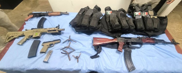 En un domicilio de dicho sector, elementos de la Agencia Ministerial de Investigación Criminal (AMIC), intervinieron con apoyo de la Secretaría de Marina y el Ejército Mexicano, y además de rescatar a una persona privada de su libertad, decomisaron tres armas largas, 20 cargadores, 585 cartuchos útiles, un arma corta, un vehículo, tres chalecos balísticos y poncha llantas.