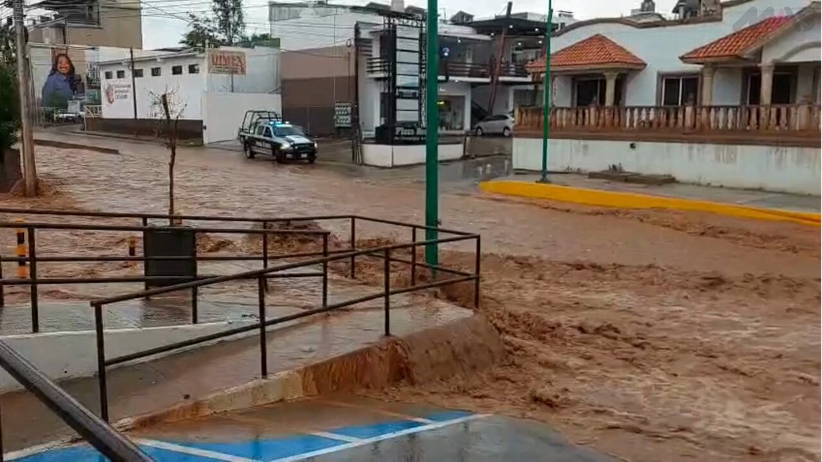 El periférico Luis Donaldo Colosio, entre las colonias Chulavista y Esperanza, también registró un considerable afluente de agua y fuertes corrientes que desembocaron en la calle 5 de Febrero.