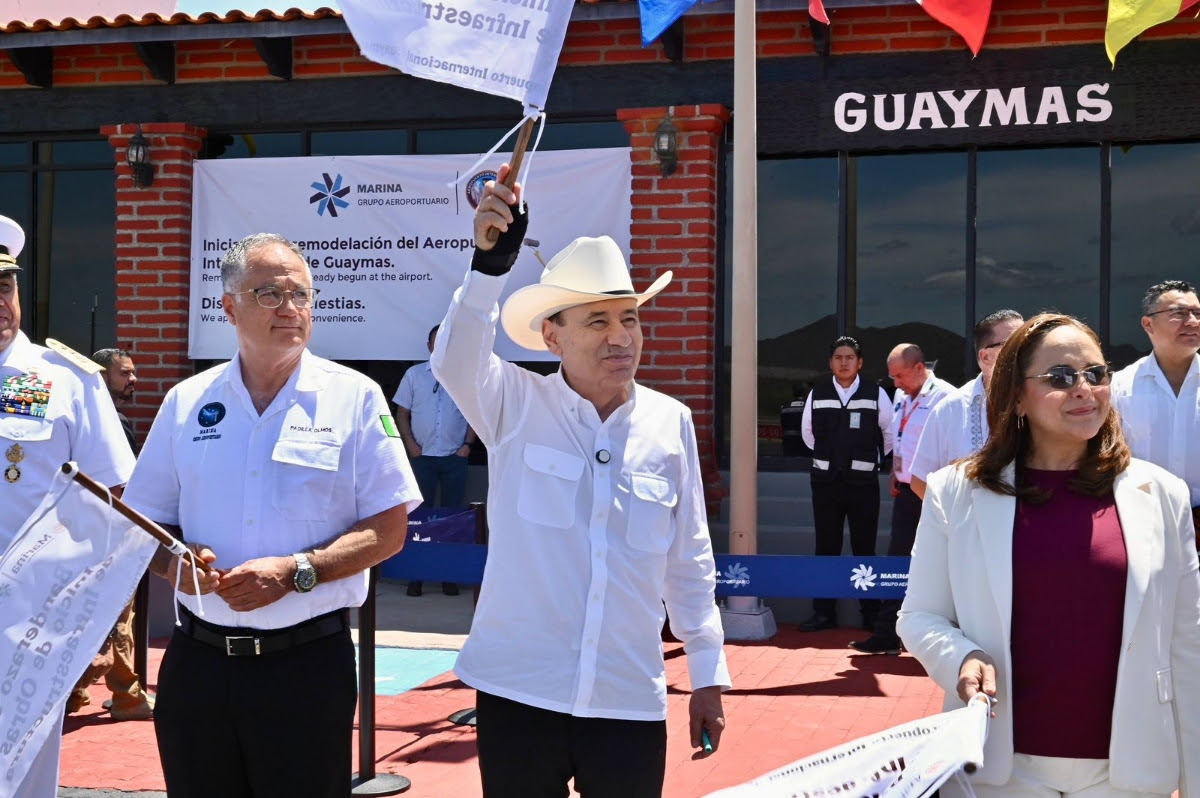 Así mismo, con una inversión de 449 millones de pesos, se inició la modernización del Aeropuerto Internacional de Guaymas – General José María Yáñez, que incluye la ampliación y rehabilitación de pista, plataforma y calles de rodaje, la construcción de una torre de control y obras complementarias en el edificio terminal y servicios auxiliares.