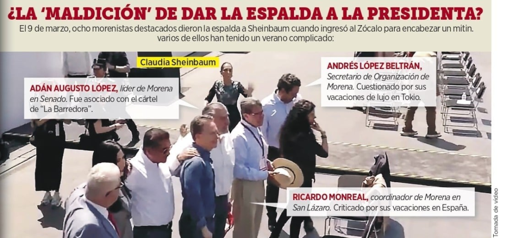 El 9 de marzo de este año, ocho dirigentes, legisladores y funcionarios dieron la espalda a la Presidenta Claudia Sheinbaum cuando ingresó al Zócalo para encabezar un mitin en defensa de la soberanía, frente a las presiones de Estados Unidos.