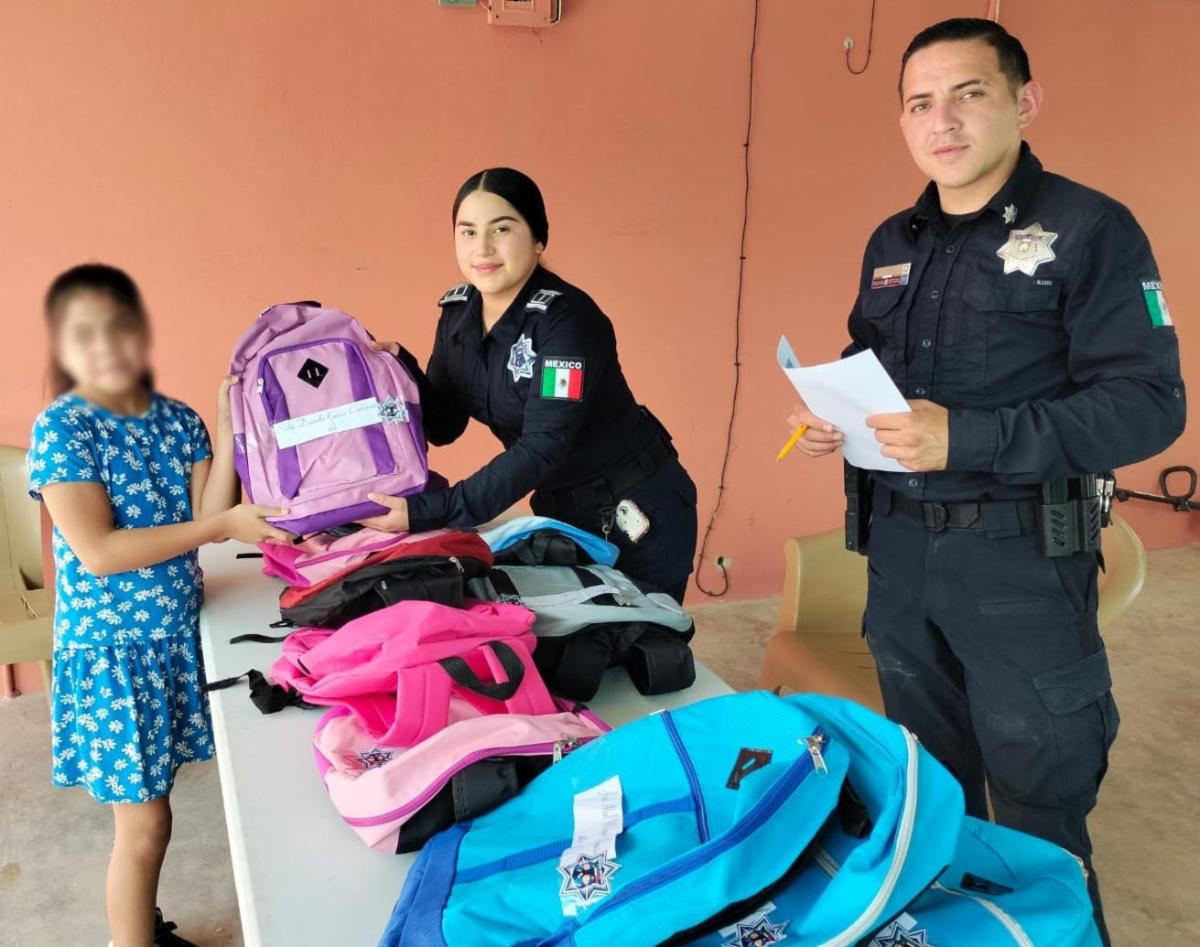Comparten grupos de la PESP del Gobierno de Sonora mochilas y útiles escolares