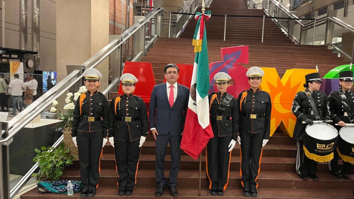 La alumna Luz Valeria Corral Ruiz, de quinto semestre del plantel Jesús Guillermo Careaga Cruz, fue la encargada de entregar la Bandera de México al Cónsul General de México en Phoenix, Jorge Mendoza Yescas.