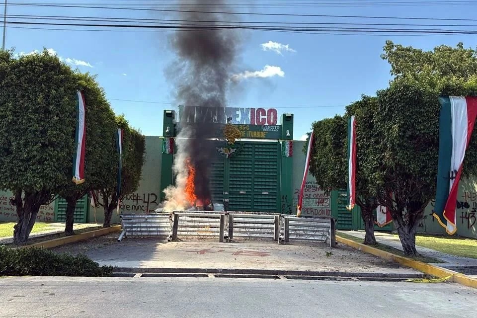 Chilpancingo, México.– Estudiantes normalistas de Ayotzinapa que exigen la presentación con vida de sus 43 compañeros desaparecidos hace casi 11 años lanzaron petardos al 27 Batallón de Infantería del Ejército en Iguala e incendiaron una camioneta afuera de estas instalaciones.