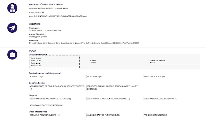 Batres también cuenta con prestaciones y seguros, entre aguinaldo, aportaciones de seguridad social y seguro de gastos médicos mayores.