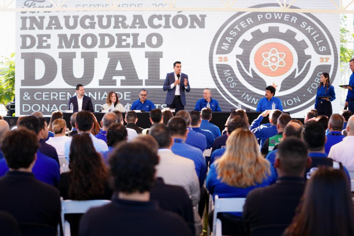 Hermosillo, Sonora; 30 de septiembre de 2025.- Para consolidar un modelo educativo de vanguardia que integre el aprendizaje en el aula con la práctica en entornos reales de la industria, el Gobierno de Sonora, a través de la Secretaría de Educación y Cultura (SEC), inició la implementación del Programa de Formación Dual entre Planta Ford Hermosillo y el Colegio de Estudios Científicos y Tecnológicos del Estado de Sonora (Cecyte).