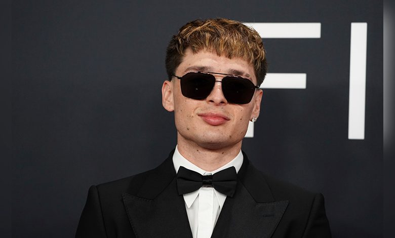 Peso Pluma llega a los Premios Grammy 2025 con un look elegante