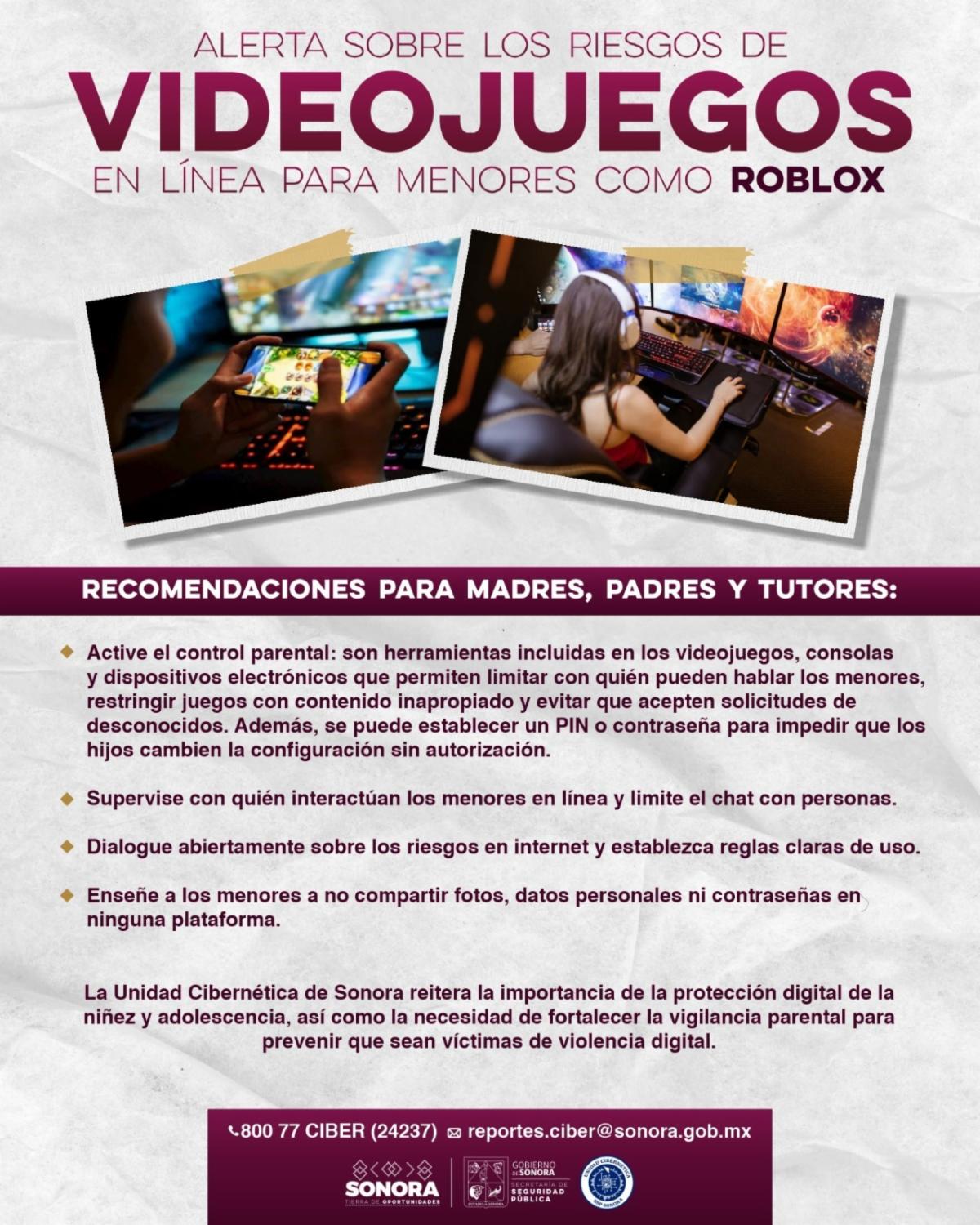 Hermosillo, Sonora; 3 de octubre de 2025.- Un llamado a madres y padres de familia a supervisar los juegos en línea que utilizan sus hijos durante el tiempo libre, emitió el Gobierno de Sonora para evitar que niñas, niños y adolescentes sean objeto de delitos.