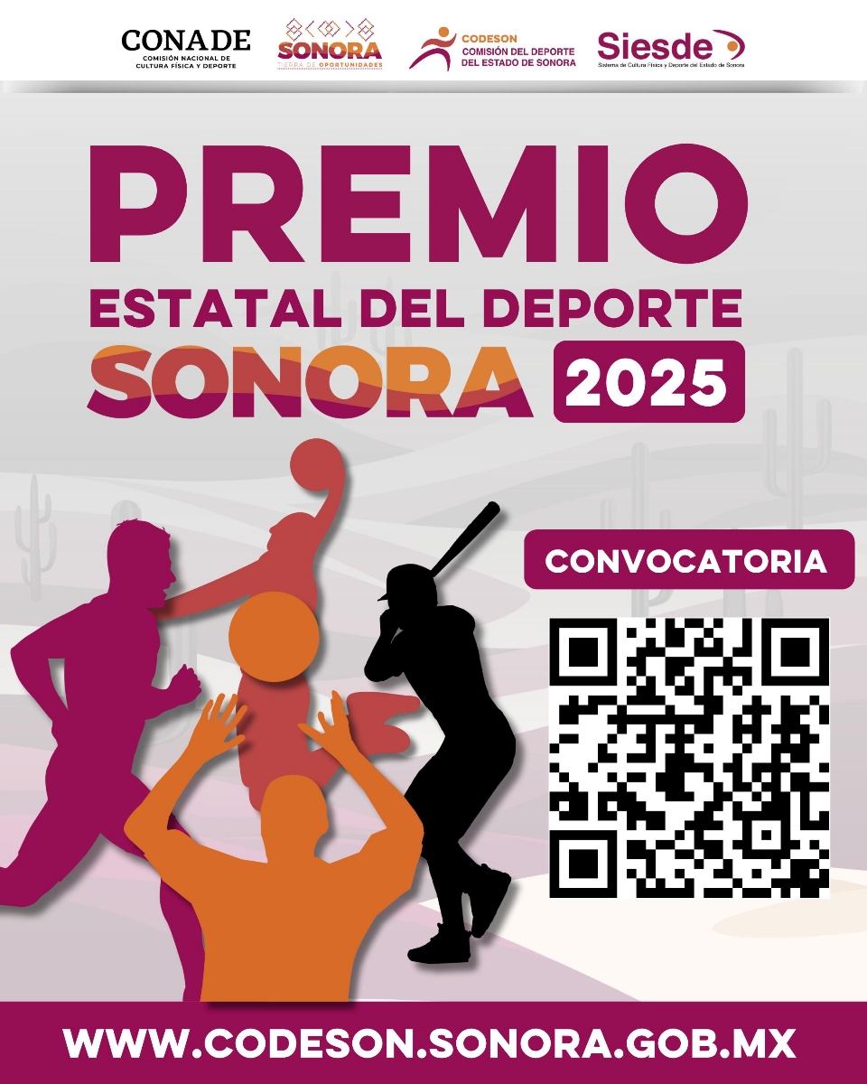 La elección del Premio Estatal del Deporte 2025 se celebrará el jueves 23 de octubre a las 11:00 de la mañana en las oficinas de la Codeson ubicadas en Bulevar Solidaridad #404 en la colonia Álvaro Obregón.