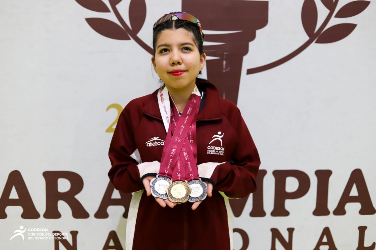 Hermosillo, Sonora, 7 de octubre del 2025.- En la segunda jornada de acciones del paratletismo, la delegación de Sonora conquistó tres medallas, una de cada color, en la que fue la sesión del domingo, dentro de la Paralimpiada Nacional 2025 con sede en Aguascalientes, Aguascalientes.