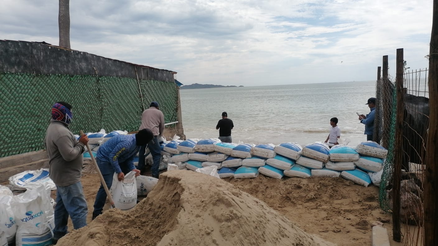Las actividades incluyen reforzar el bordo y la costalera que el agua derribó en la calle Guaymas; reforzar bordo y colocar costales con arena en la calle Cozumel y colocar barrera de costales en las calles Cochorit y Rosarito, detalló.