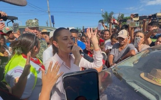 Enfrenta Presidenta Sheinbaum reclamos de damnificados en visita a Poza Rica