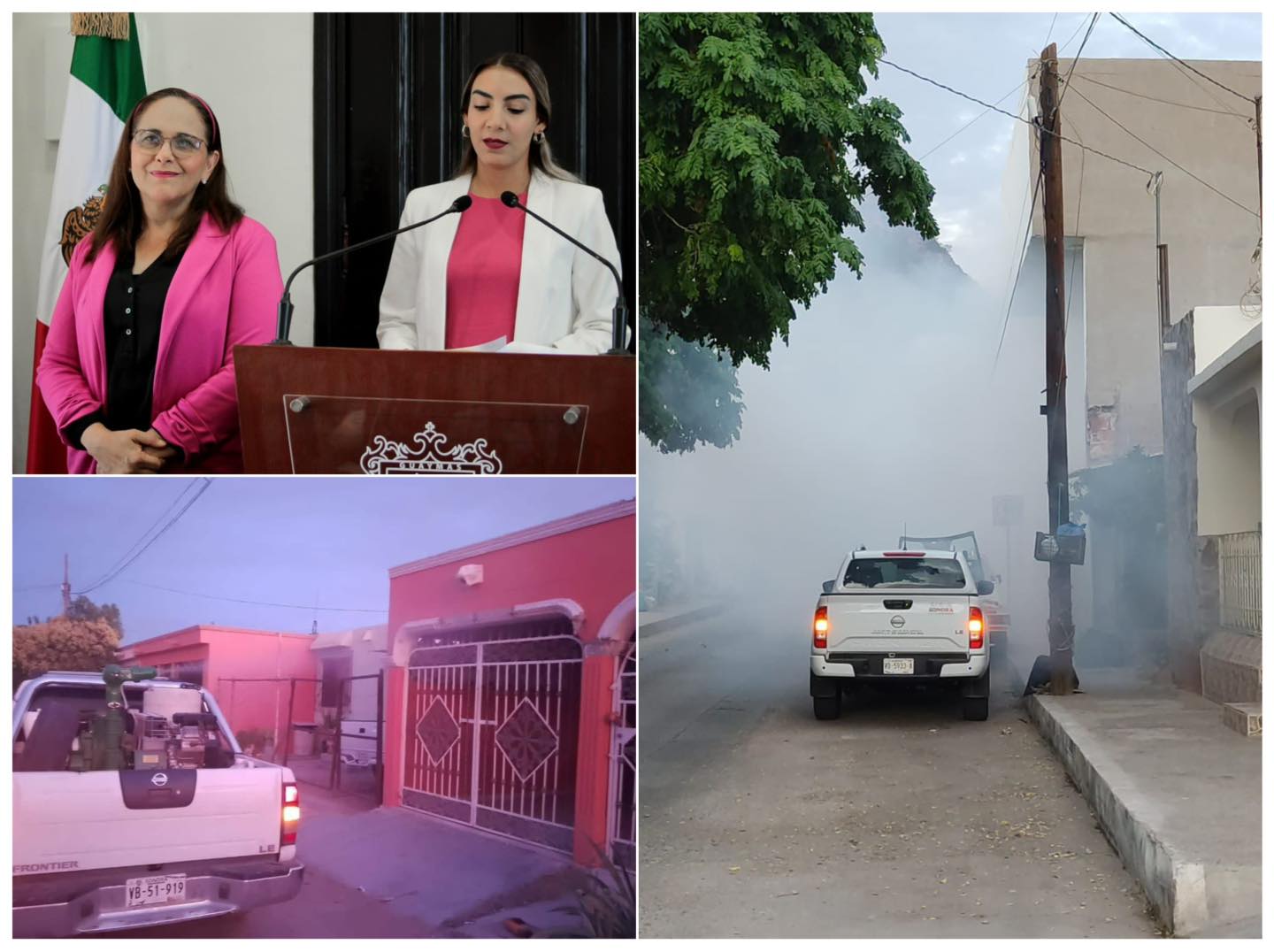 En conferencia de prensa, Austria Castro Gracia, directora de Salud Pública Municipal, indicó que para este jueves se tiene programada la fumigación en las comunidades de Pótam y Vícam y para el viernes 17 en Tórim, Estación Oroz, Rahum, Huirivis, Guásimas, Pitahaya, Baugo, Vícam Pueblo, Casas Blancas, Santa Clara, San José, La Salvación, Aranjuez, La Cuadrita y la Manga 1 y 2, esto en horario de 4 a 7:00 a. m.