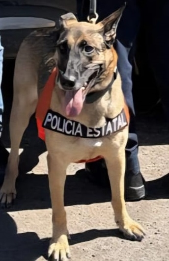 El canino Hilda II, especialista en la detección de narcóticos, armas de fuego y divisas de la PESP, colaboró en la detención de José Humberto “N”, de 28 años de edad, en posesión de una bolsa y nueve envoltorios con narcótico, en las inmediaciones de la colonia Adolfo López Mateos.