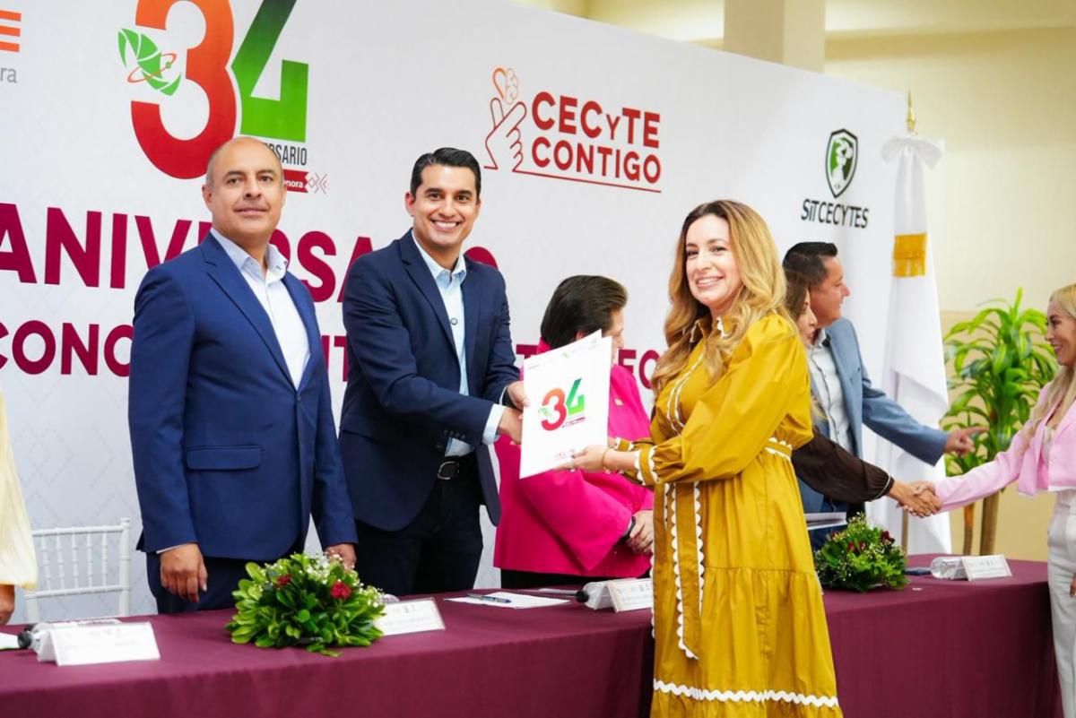 Hermosillo, Sonora; 20 de octubre de 2025.- El Gobierno de Sonora, a través del Colegio de Estudios Científicos y Tecnológicos del Estado de Sonora (Cecyte) conmemoró el 34 aniversario del subsistema con una ceremonia en la que reconoció la trayectoria de docentes y personal de servicio por sus años de dedicación, esfuerzo y compromiso con la educación de las y los jóvenes sonorenses.