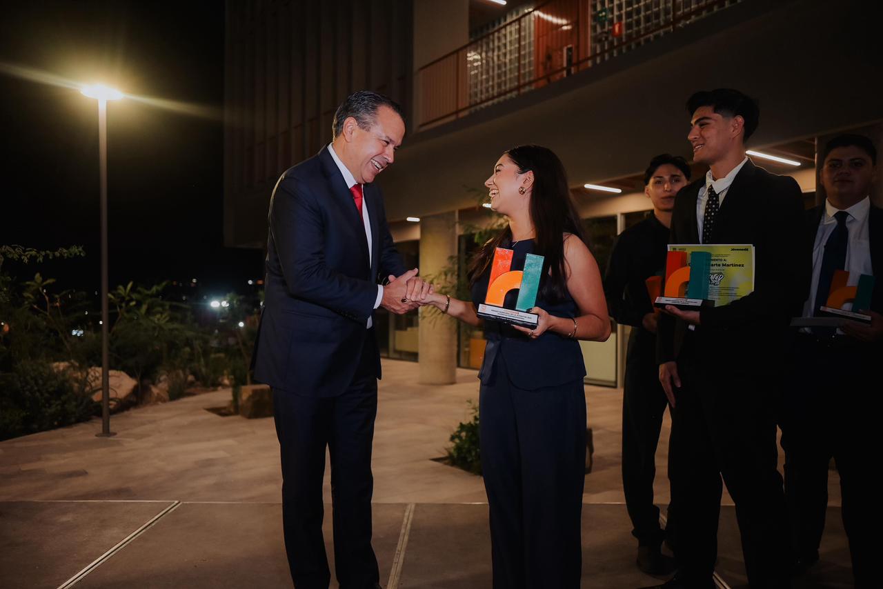 Acompañado por María Paula Astiazarán Ruibal, presidenta del voluntariado juvenil de DIF Hermosillo, y Francisco Villaescusa Carrillo, director del Instituto Hermosillense de la Juventud (IHJ), Toño Astiazarán entregó sus reconocimientos a quienes resultaron finalistas en las 13 distinciones de las 2 categorías y luego sus trofeos a las y los ganadores.