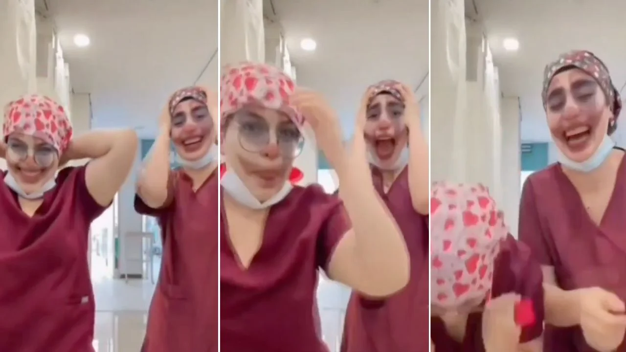 Las imágenes se hicieron virales y en ellas se observa a dos jóvenes con uniforme quirúrgico, cofia y cubrebocas riendo y utilizando un filtro de la cámara de un celular mientras arremedan los gritos de lo que parece ser una paciente.