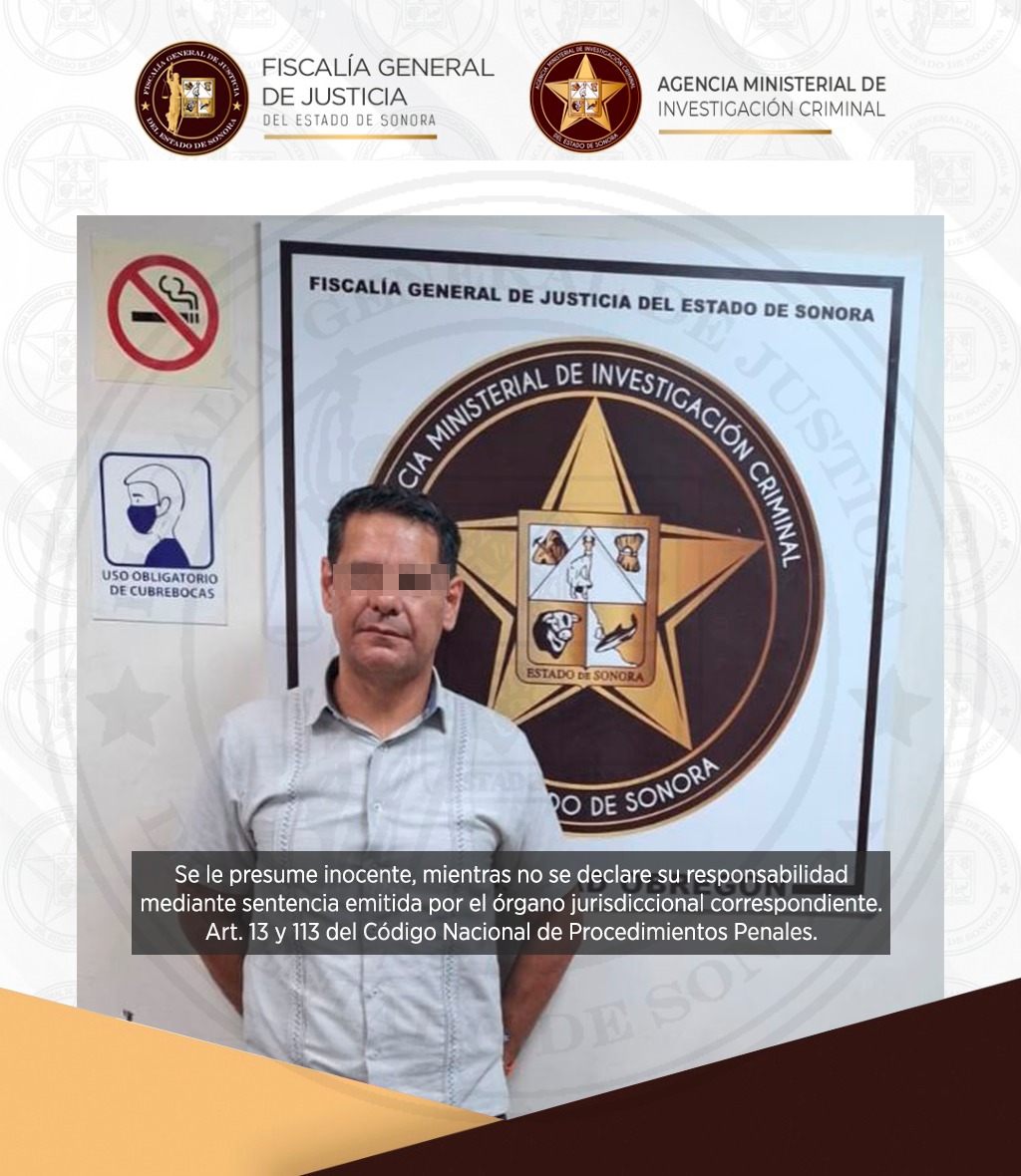 Tras su aseguramiento, Luis Fernando “N”, de 48 años, fue trasladado e ingresado al Centro de Reinserción Social (CERESO) de Hermosillo, donde permanece a disposición del órgano jurisdiccional que conoce del caso.