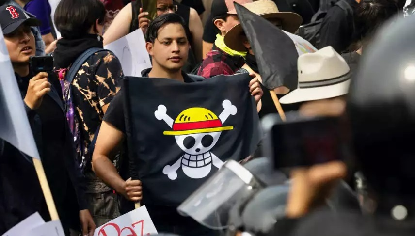 Pero el asunto luce más complicado. La convocatoria detonó con el asesinato del alcalde de Uruapan, Carlos Manzo cuyo sombrero se ha convertido en símbolo de un movimiento que la semana pasada tomó el palacio de gobierno de Morelia, Michoacán y en Uruapan, y congregó a decenas de miles de ciudadanos hartos de la violencia del crimen organizado. Curiosamente la bandera de la Generación Zeta es una calavera pirata con un sombrero de paja, tomada de un anime que entre otras cosas es el más vendido en la historia en sus productos para jóvenes entre los 15 y 35 años: series de televisión, animes y videojuegos.
