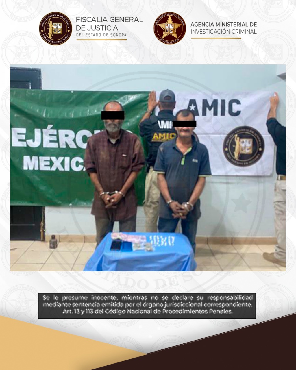 Ímuris, Sonora, 14 de noviembre de 2025.- La Fiscalía General de Justicia del Estado de Sonora (FGJES) informa que, en un operativo conjunto entre la Agencia Ministerial de Investigación Criminal (AMIC) y la Secretaría de la Defensa Nacional (DEFENSA), se llevó a cabo una diligencia de cateo con resultados positivos en Ímuris, logrando la detención de dos sujetos por delitos contra la salud.