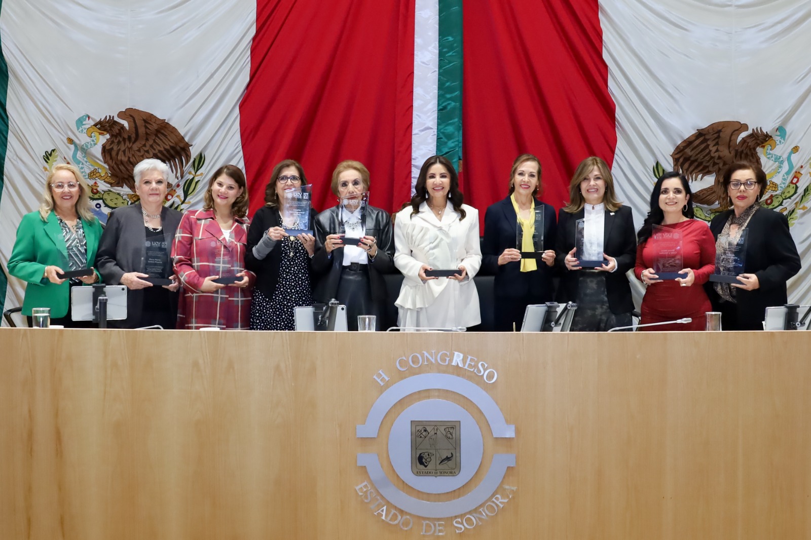 El Congreso del Estado distinguió a once mujeres cuyo liderazgo y dedicación han generado un impacto significativo en sus comunidades, instituciones y áreas de influencia: Amelia Iruretagoyena Quiroz, política sonorense; Irma Arana Rodríguez, investigación histórica y disciplinas artísticas; Dora María Lemas Huerta, trabajo social y obras filantrópicas; Karla Josefina Santacruz Gómez, ciencias e ingenierías; Dalia Figueroa Nicola, docencia; Martha Patricia Patiño Fierro, función pública; Ana Luisa Chávez Haro, ámbito jurídico; Blanca Rosa López Martínez, literatura; Armida Bernal Reyes, periodismo; Gloria Pérez Cosío y Sánchez, ámbito salud; y María Teresa Domínguez Islas, ámbito deportivo.