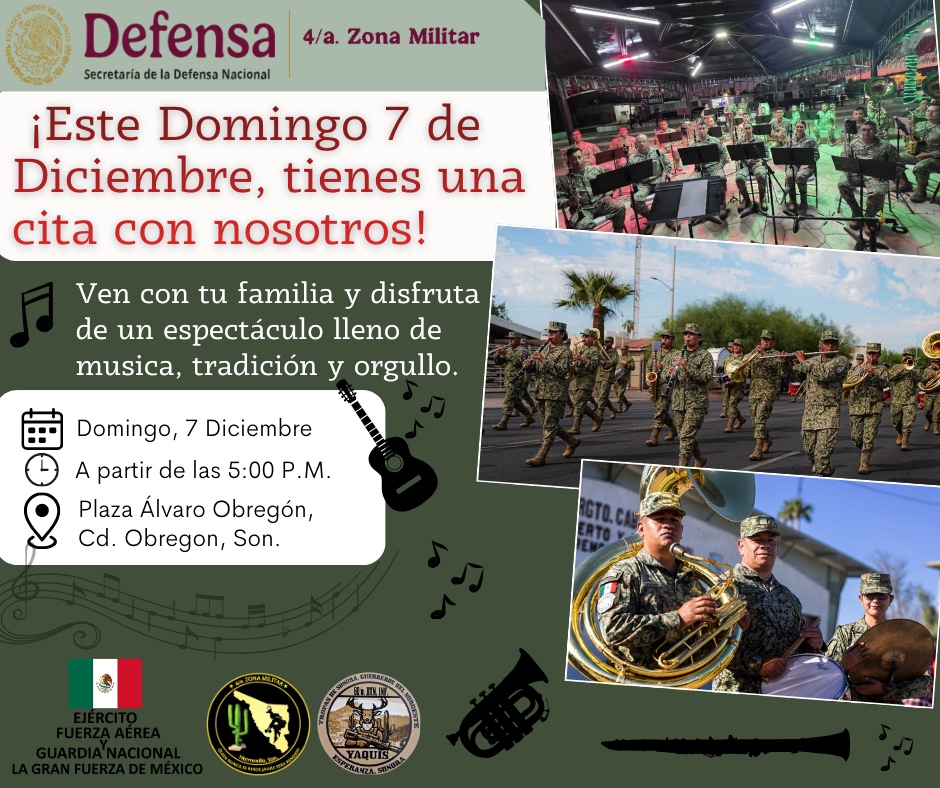 La Secretaria de la Defensa Nacional a través de la Comandancia de la 4/a. Zona Militar, hace del conocimiento a la ciudadanía, que el evento MAGNO CONCIERTO GRATUITO DE LA BANDA DE MÚSICA DEL EJÉRCITO MEXICANO, el cual se tenía contemplado llevar a cabo en la Laguna del Nainari, cambiará de sede.