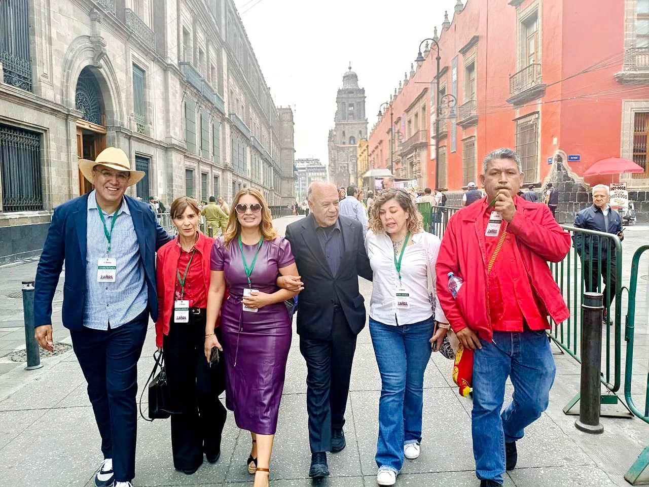 Ramón Flores llegó acompañado por su dirigente nacional, el profesor Alberto Anaya, líder del Partido del Trabajo (PT). También estuvieron presentes diputadas y diputados federales, senadores y representantes de diversas entidades del país, incluido Sonora. Asimismo, Ramón Flores coincidió con el gobernador de Sonora, Dr. Alfonso Durazo Montaño, compartiendo este momento emblemático para la vida pública nacional.