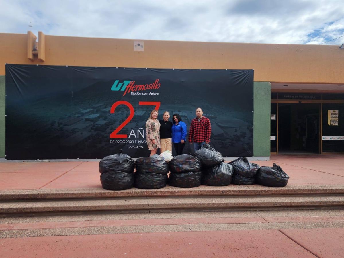 Hermosillo, Sonora; 10 de diciembre de 2025.- Con el objetivo de motivar a su alumnado a involucrarse y apoyar causas benéficas, la Universidad Tecnológica de Hermosillo (UTH) organizó una campaña de donación de tapitas, a través de la cual se recolectaron alrededor de 62 mil piezas que fueron entregadas a la organización Reciclando por Sonrisas “Ave Badu”.