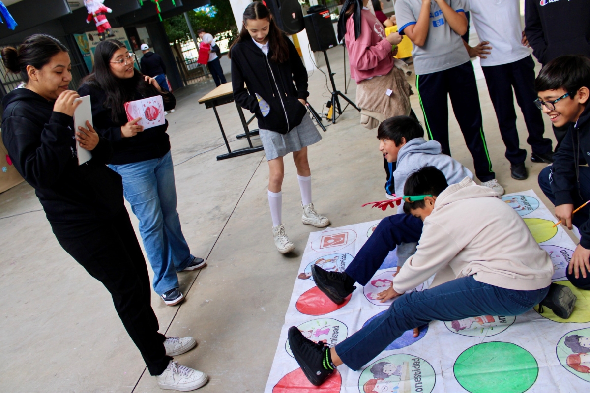 Hermosillo, Sonora; 17 de diciembre de 2025.- La Secretaría de Salud Pública (SSP), dependencia del Gobierno de Sonora, a través de la Dirección de Salud Mental y Adicciones, llevó a cabo la activación comunitaria titulada “Autocuidado de la salud mental: una tradición decembrina”, en las instalaciones de la Secundaria General No. 5 “José Vasconcelos”, como parte de las acciones de promoción de la salud emocional en el ámbito escolar.