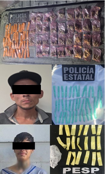 En una segunda intervención, derivada de los patrullajes preventivos y la presencia de elementos PESP, fue detenida una persona identificada como Santos “N”, de 31 años de edad, quien se encontraba en posesión de 40 envoltorios de sustancia con características similares al cristal, con un peso aproximado de 35 gramos, equivalentes a 175 dosis, en la colonia Olivos.