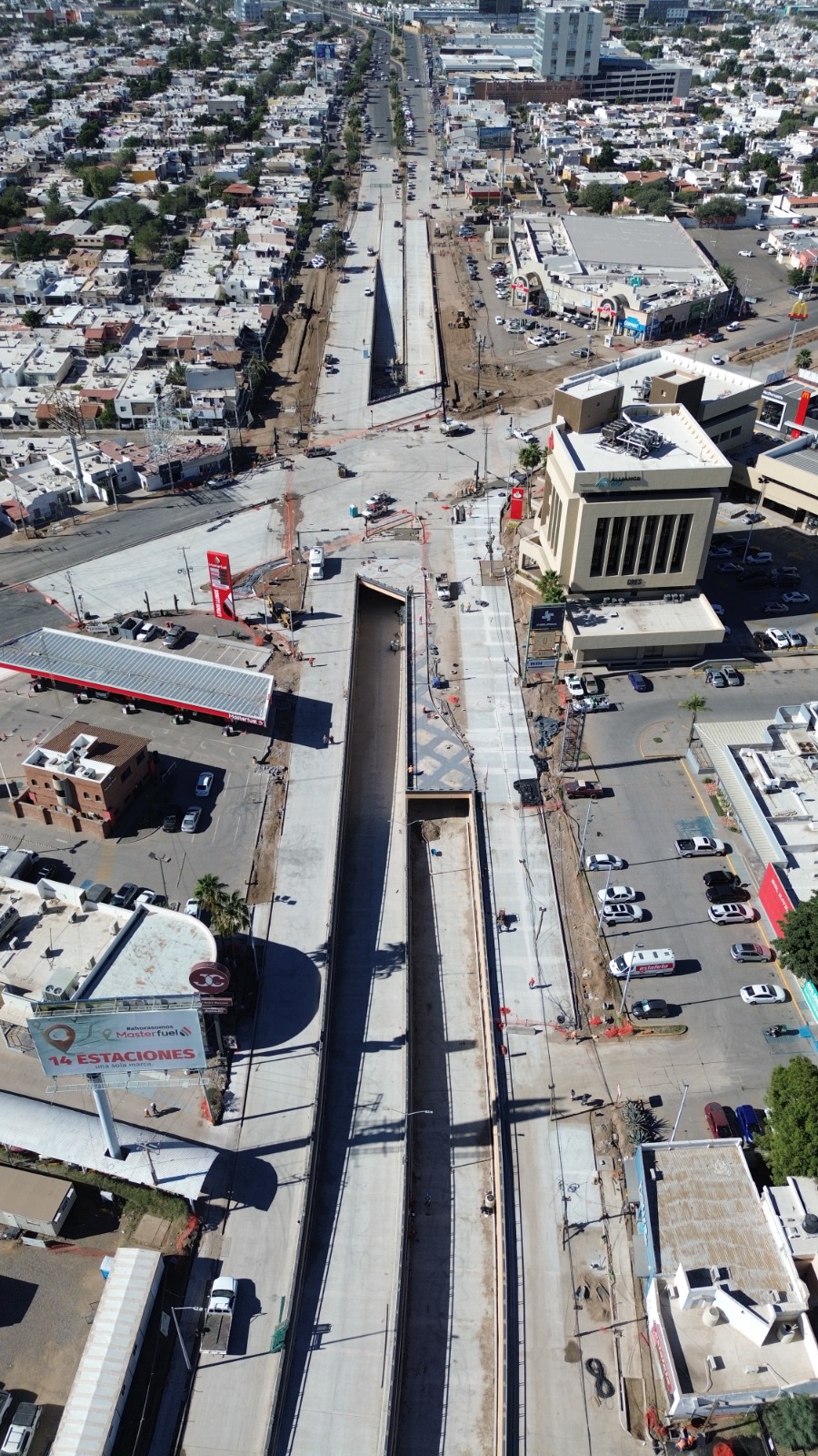 Destacó que esta obra integral con recursos municipales avanza en tiempo y forma, consolidándose como una de las intervenciones viales más importantes de la capital sonorense, al estar diseñada para mejorar el flujo de más de 74 mil vehículos que transitan diariamente por esta zona de alta demanda.