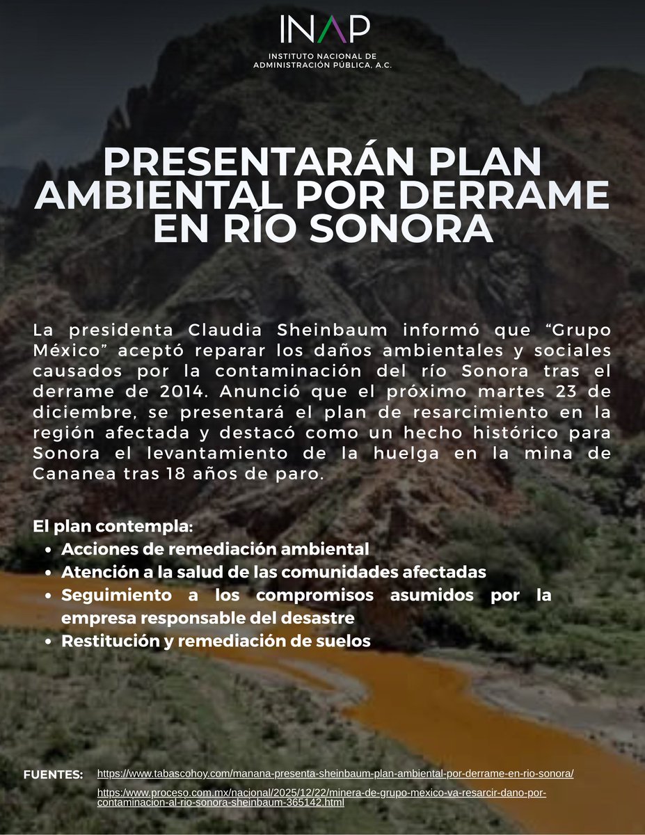 Tras más de 10 años de contaminación de la minera de Grupo México al río Sonora, esta empresa aceptó cumplir con la reparación del daño a comunidades afectadas, informó la presidenta Claudia Sheinbaum.