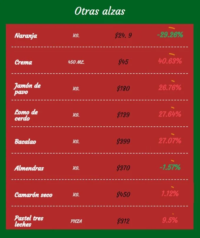 De hecho, de acuerdo con el análisis realizado por REFORMA, estos dos productos aportaron casi la mitad del crecimiento que tuvo el costo de la cena navideña.