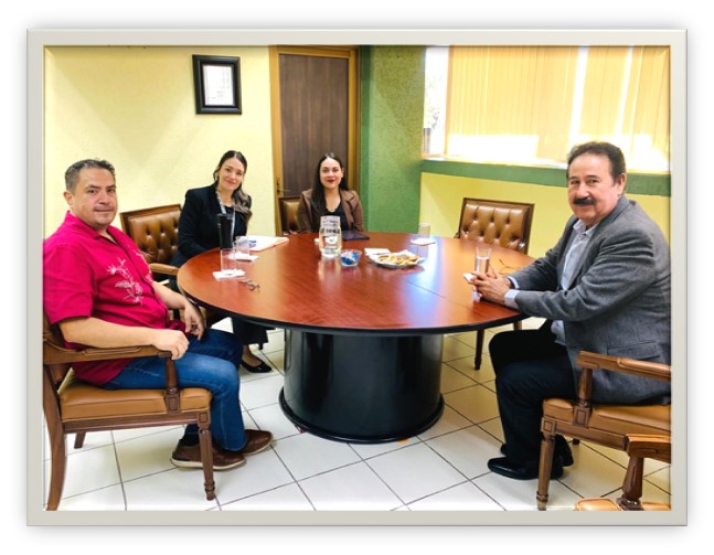 El rector de la UT, Miguel Ángel Salazar Candia, y la directora de Vinculación, Karla Rivera Nieblas, sostuvieron un diálogo con el presidente de Canacintra Nogales, Miguel Ángel Torres Martínez, y la directora del organismo, Raquel Ruiz, quienes destacaron la importancia de integrar, representar y respaldar a jóvenes emprendedores.