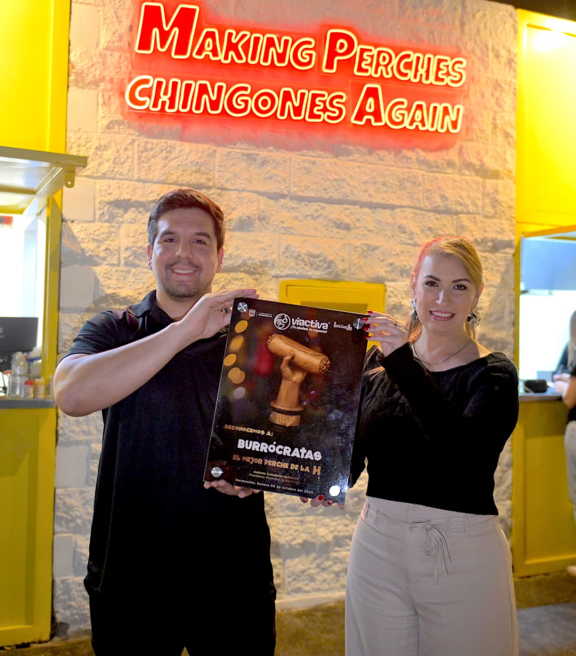 Hermosillo, Sonora; 29 de diciembre, 2025.- El inconfundible sazón de “Burrócratas” los llevó a coronarse como “El Mejor Perche de La H”, distintivo que Fernanda Cisneros Rodríguez, directora de Desarrollo Turístico de la Agencia Municipal de Desarrollo Económico (AMDE) entregó por su sobresaliente participación en el “Perchefest 2025”.