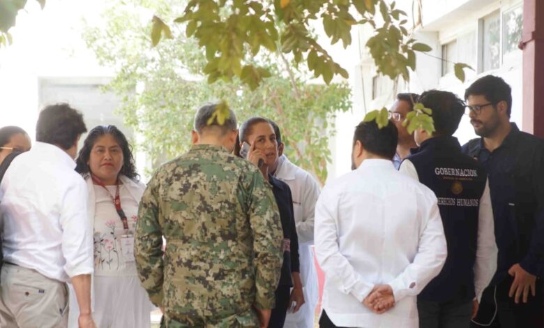Claudia Sheinbaum estuvo acompañada de funcionarios federales de la Secretaría de Salud Federal, del Instituto Mexicano del Seguro Social (IMSS), del IMSS Bienestar, del ISSSTE y de la Secretaría del Bienestar; así como funcionarios estatales del sector salud y del secretario de Gobierno, Jesús Romero López.