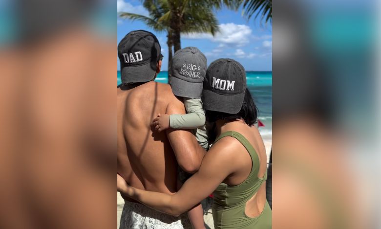 En esta ocasión, desde la playa, usaron las mismas gorras y sumaron la de “Big brother” a Vicente, quien será el hermano mayor del nuevo integrante de la familia.