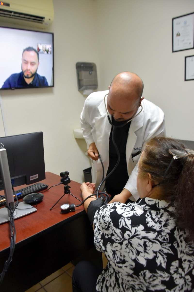 La atención se realiza a través de un médico internista que monitorea a las y los pacientes desde Hermosillo, utilizando pantallas y cámaras de video de última generación, estetoscopios digitales y con el apoyo de un médico general perteneciente al Instituto en las distintas poblaciones.
