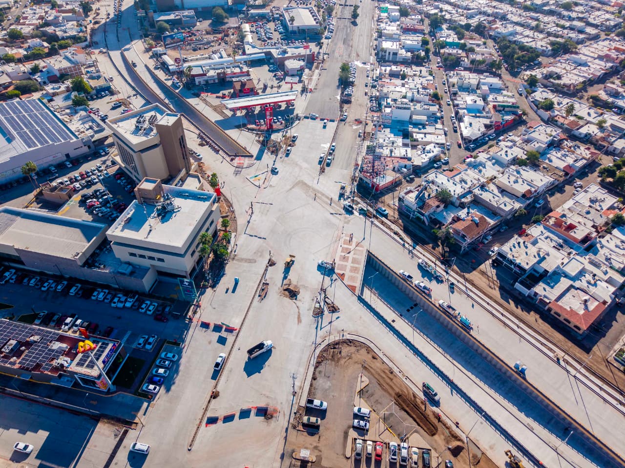 La directora de la Desarrollo de Infraestructura destacó que tras la apariencia despejada actual del paso a desnivel hubo mucho trabajo previo, en coordinación con la Comisión Federal de Electricidad y empresas proveedoras de servicios como internet y gas natural, para la colocación subterránea de todas sus infraestructuras y mencionó que resta poco por hacer para la reubicación de postes y cableado faltantes.