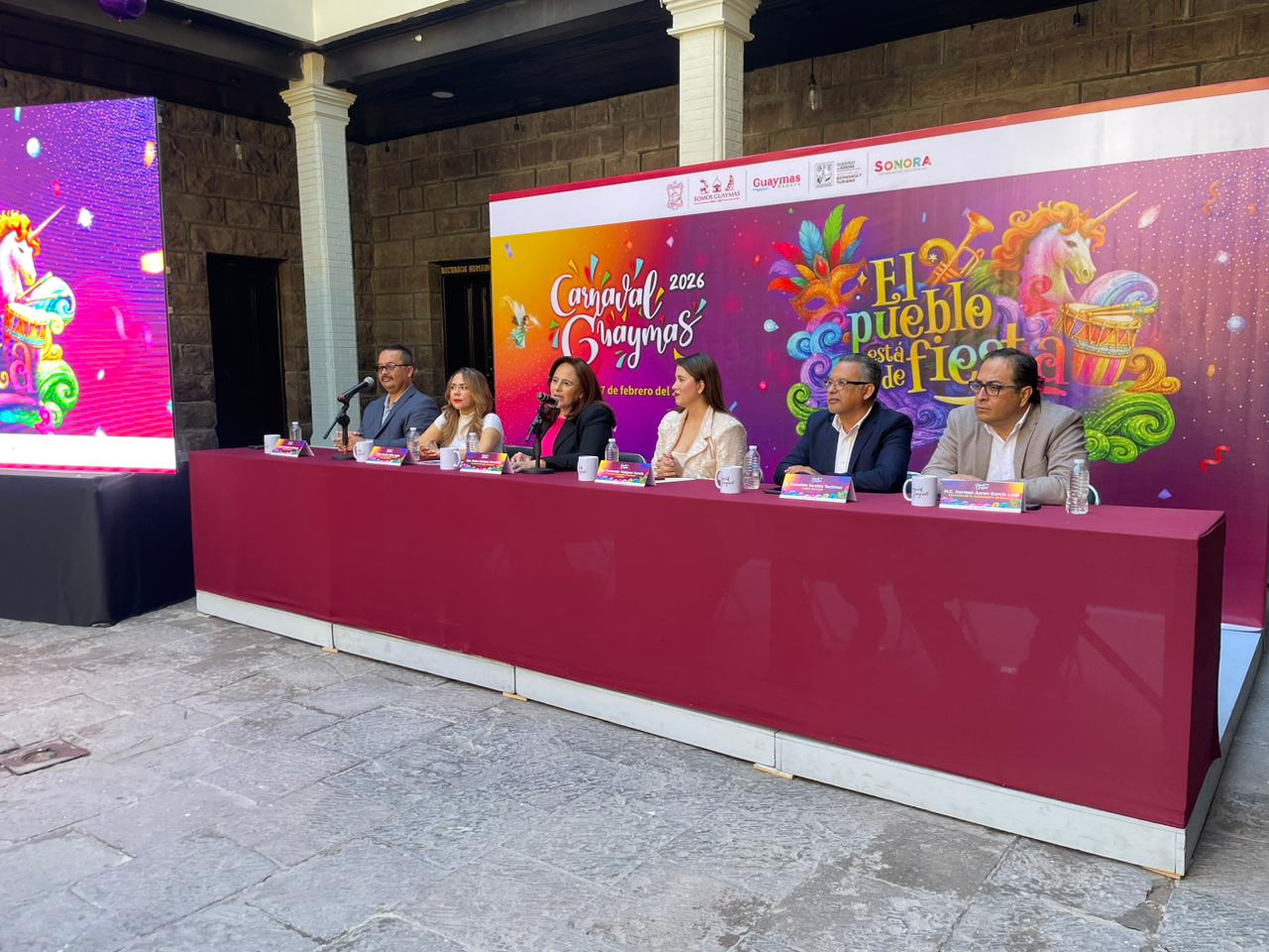 Guaymas, Sonora, 16 de enero de 2026.- Para que la comunidad y visitantes al Carnaval Guaymas 2026 “El pueblo está de fiesta”, este viernes el Ayuntamiento de Guaymas a través de Desarrollo Económico y Turístico y la Coordinación de Festividades, presentó la cartelera musical.