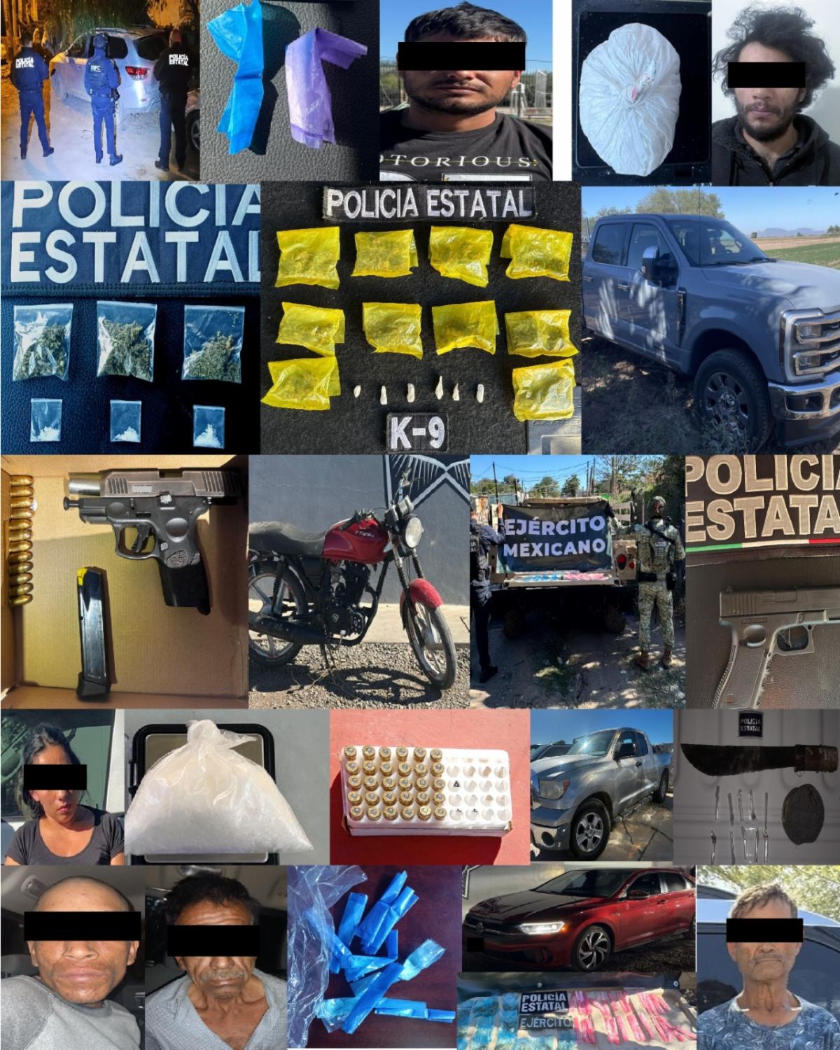 Hermosillo, Sonora; 16 de enero de 2026.– Con el trabajo operativo en calles de Sonora, la Policía Estatal de Seguridad Pública (PESP) generó, durante un día, detenciones en Cajeme, Hermosillo, Nogales, Guaymas, Caborca y Bácum.