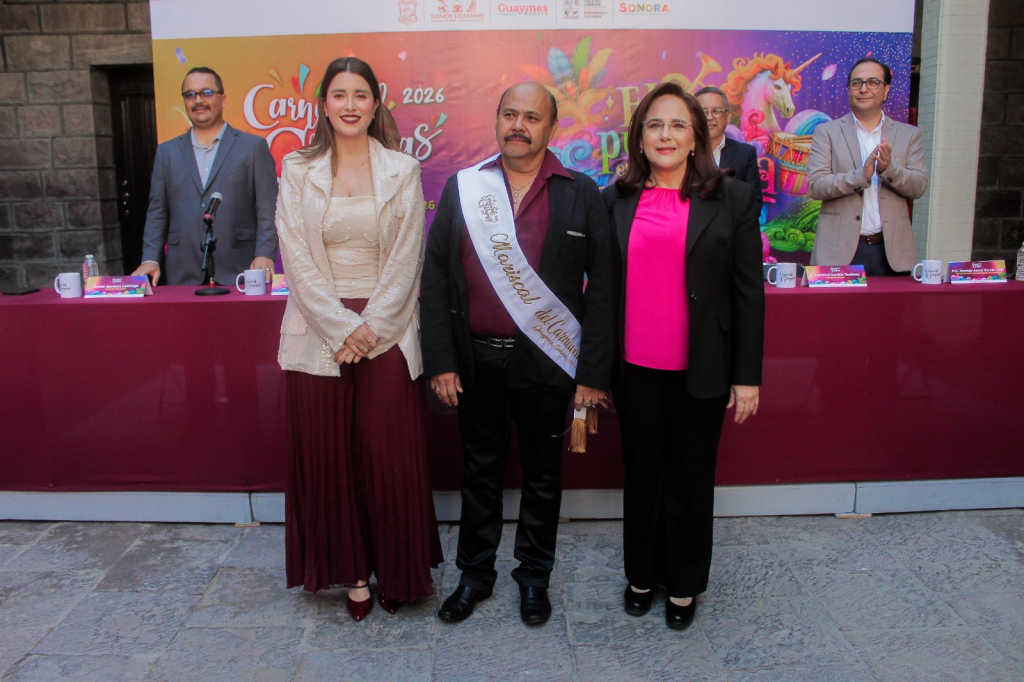 El organizador, el Ayuntamiento de Guaymas, encabezado por la doctora Karla Córdova, realizó el pasado viernes en el patio de Palacio Municipal, la presentación del programa del Carnaval 2026 “El pueblo está de fiesta”, que se realizará del 12 al 17 de febrero.