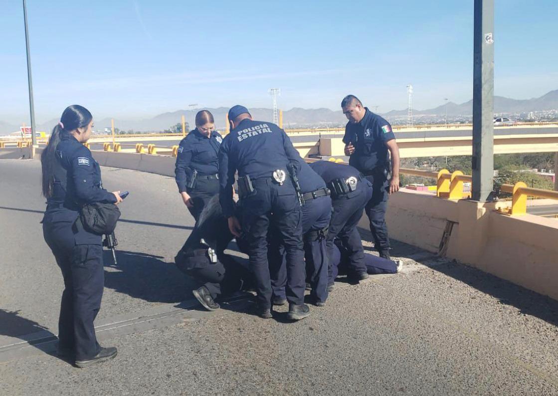 Hermosillo, Sonora; 19 de enero de 2026.- En un acto heroico para salvar la vida de una mujer, la Policía Estatal de Seguridad Pública (PESP) intervino para dialogar y asegurar a una persona que intentó atentar contra su vida desde un puente en la ciudad de Hermosillo.