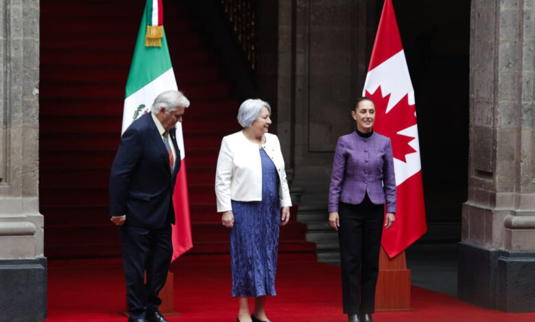 La presidenta de México, Claudia Sheinbaum Pardo, recibió este martes a Mary Simon, gobernadora general de Canadá, en Palacio Nacional, en un encuentro de carácter diplomático que se da en un momento clave para la relación trilateral de América del Norte.